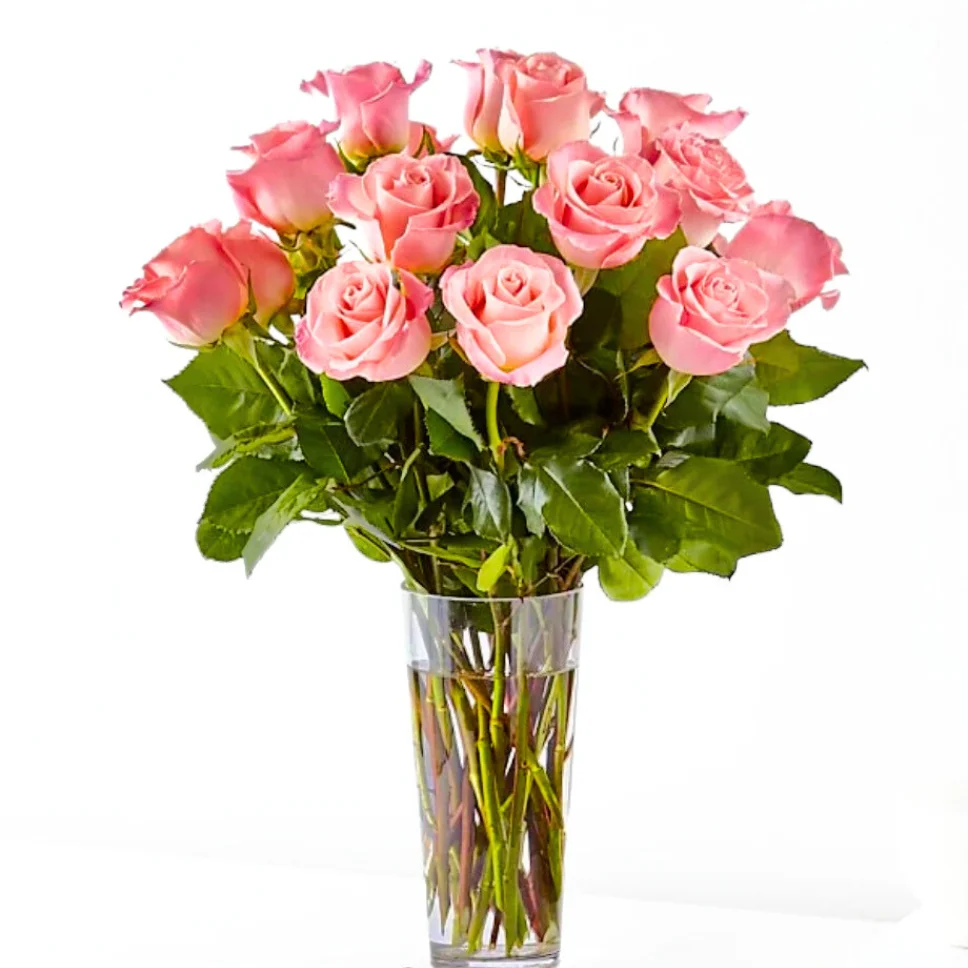 A timeless arrangement of soft pink roses in a clear glass vase — perfect for expressing love, grace, and heartfelt emotions. Ideal for Mother’s Day, birthdays, or simply brightening someone’s day.