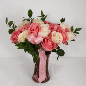 Elegant Blush – Two-Tone Rose Vase for Mother’s Day (Oshawa Delivery)